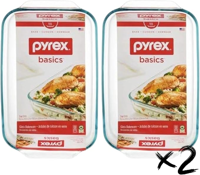 9×13 Oblong Glass Baking Dish Set of 2 – Pyrex Basics, 3 Quart