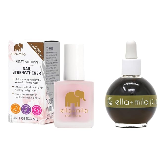 Nail Strength & Care Duo (Olive & Avocado Cuticle Oil + First Aid Kiss Strengthener) – ella+mila